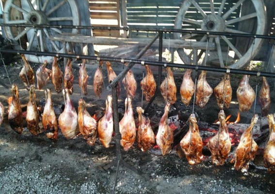 Un méchoui d'agneau basque ou de cochon de lait aux abords d'une bergerie en montagne...