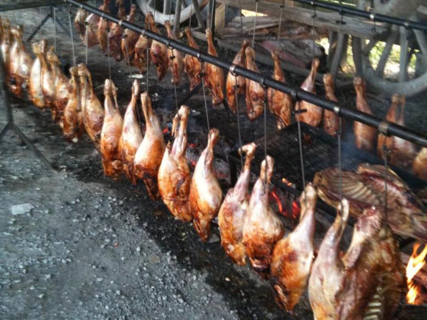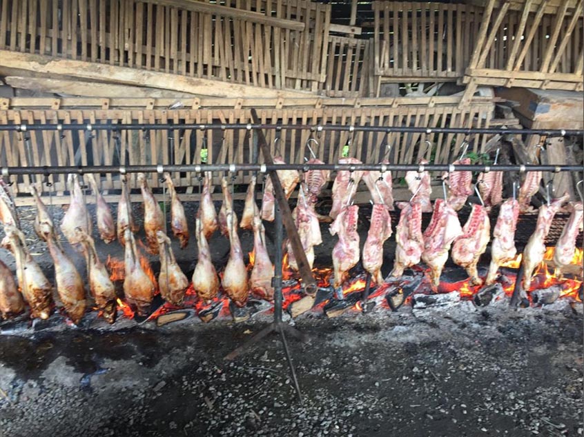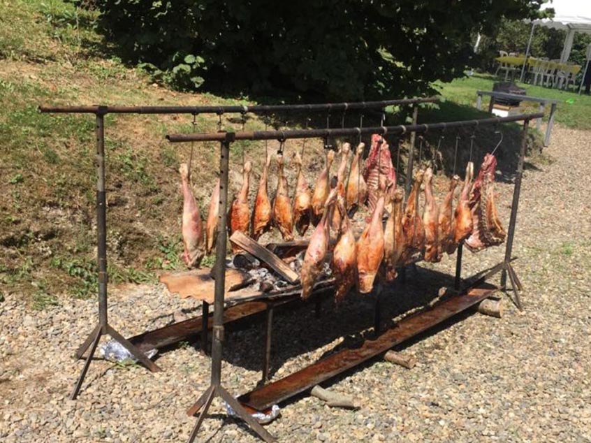 Un méchoui d'agneau basque ou de cochon de lait aux abords d'une bergerie en montagne...